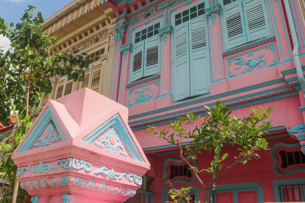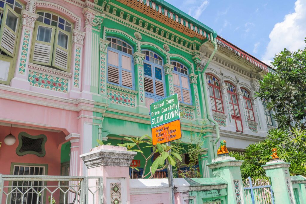 最大の魅力は、パステルカラーの可愛らしいプラナカン建築!