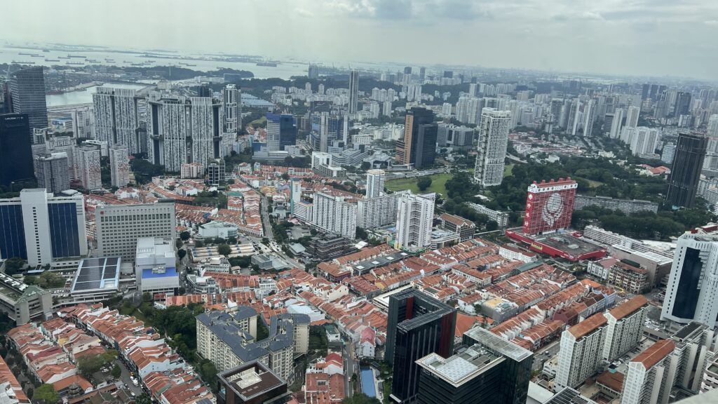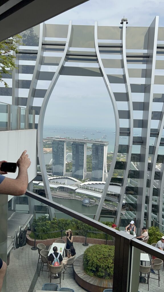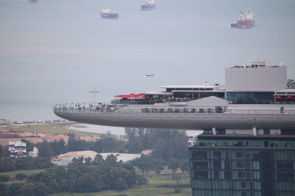 マリーナベイサンズと、その向こうに広がる海を見下ろすことができます。