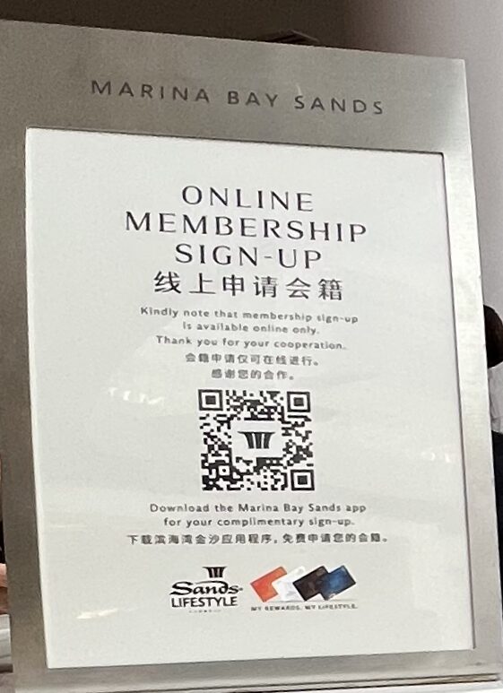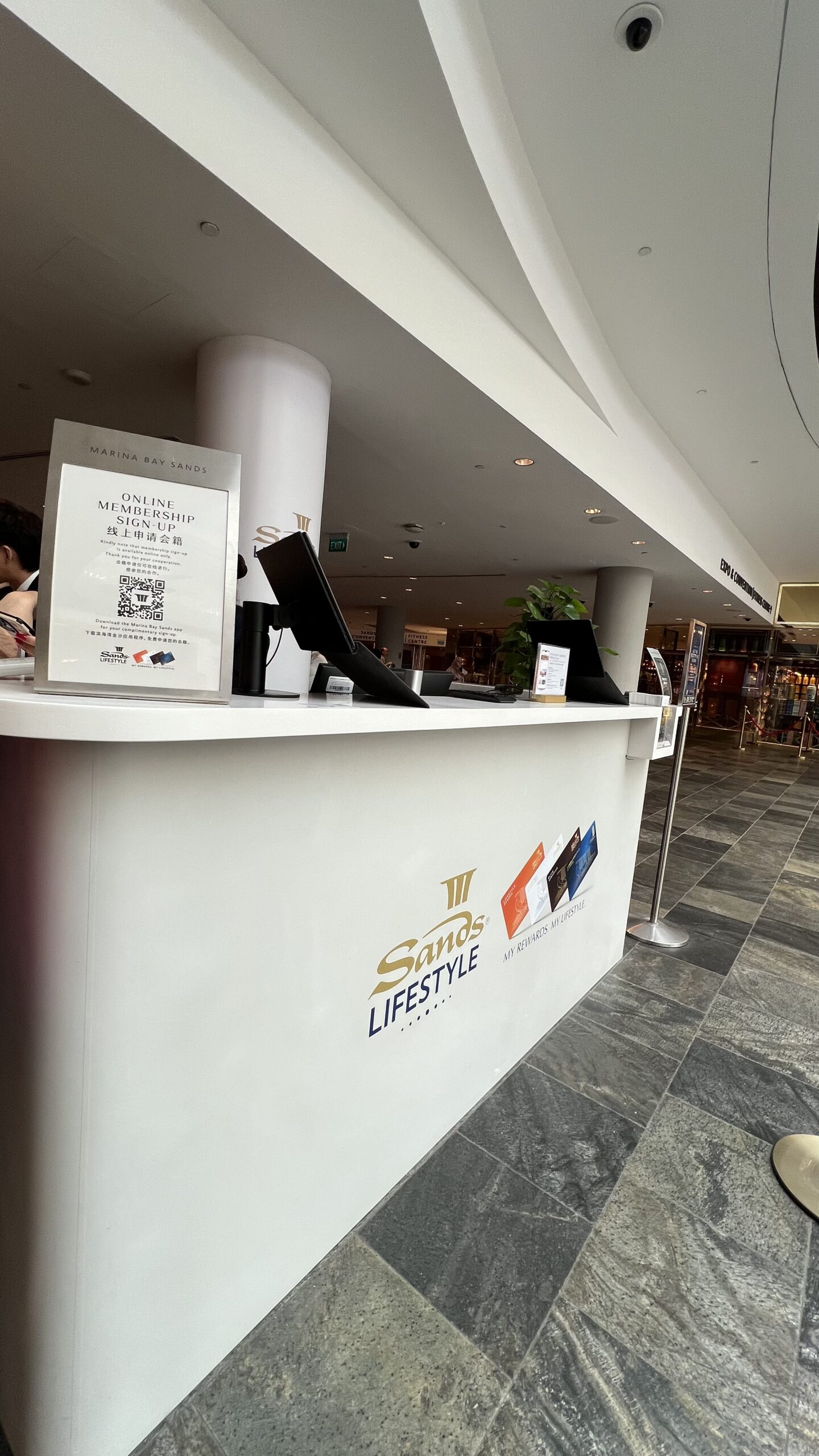 やり方は簡単で、マリーナベイサンズ駅から建物に入ったところにあるサービスカウンターで、楽天会員のランクを提示するだけ。